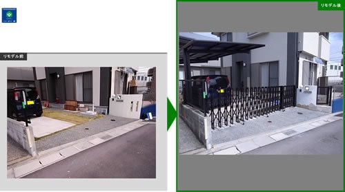 道路に子どもさんが飛び出すことを防止するために伸縮ゲートの設置を検討され、既存の門壁では、車庫部分から庭に出入りできなかったために門壁の一部を門扉にすることで出入り可能になりました。