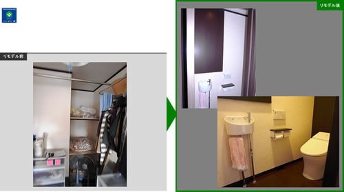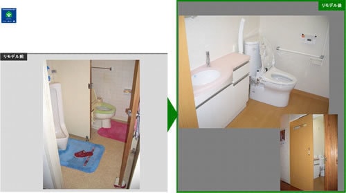 小便器と大便器の分離型のトイレスペースを介護が必要になったご家族のためにリモデル。